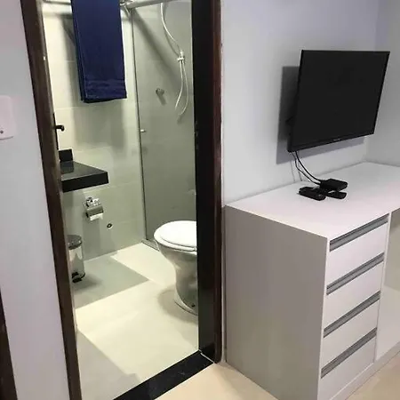Apartamento Encantador Em Recife bestaat uit een zitruimte met een bank en een bureau, en modern comfort zoals breedbandinternet en een flatscreen TV met satellietzenders. Het appartement heeft ook een apart toilet en een douche. Daarnaast vindt u er badlakens.
